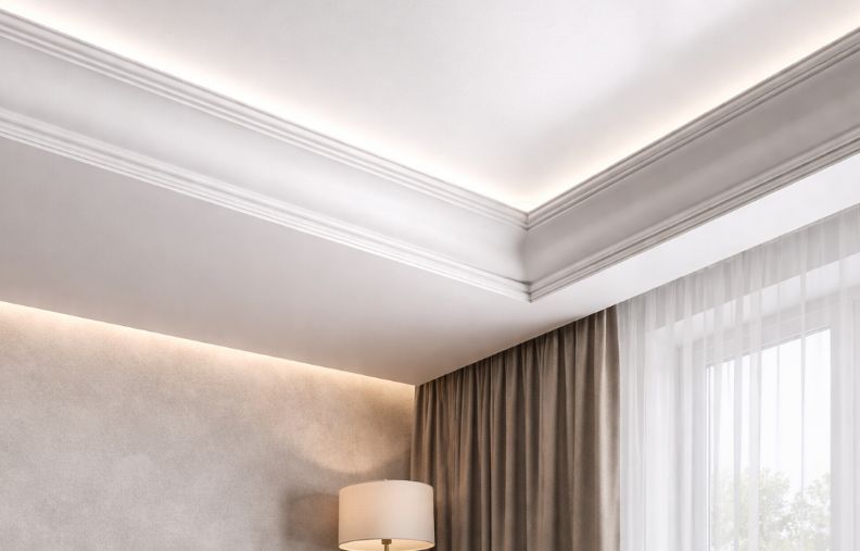 Плинтус (потолочный карниз, заглушка, вставка) необходим для придания эстетичного вида натяжному потолку, а также для скрытия технологического зазора между стеной и натяжным потолком (примерно 8 мм) по периметру помещения. С натяжным потолком может использоваться как самый обыкновенный потолочный плинтус из пенопласта, так и специальная пластиковая заглушка.