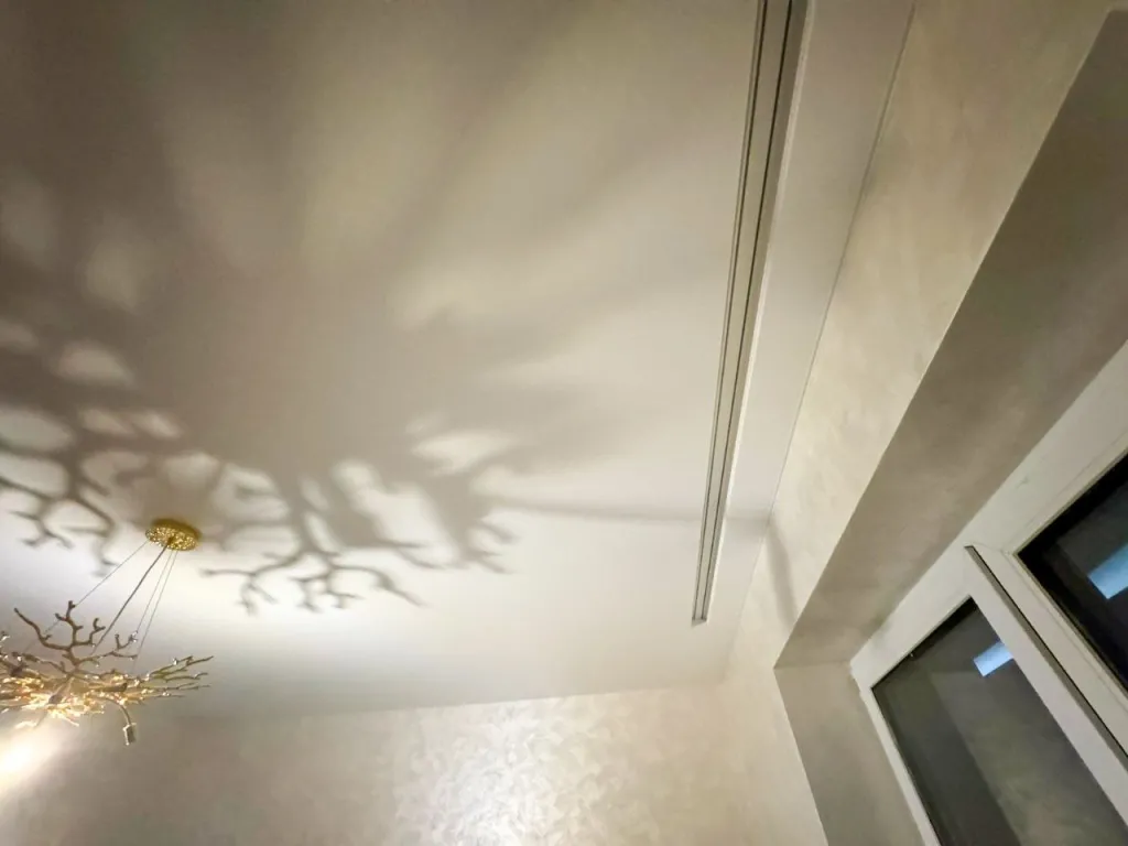 Шов на натяжном потолке – ровная полосочка, шириной всего 1 мм. Виден он, безусловно, будет, однако сравнивать такой шов со швом между плитами перекрытия, конечно, не приходится.