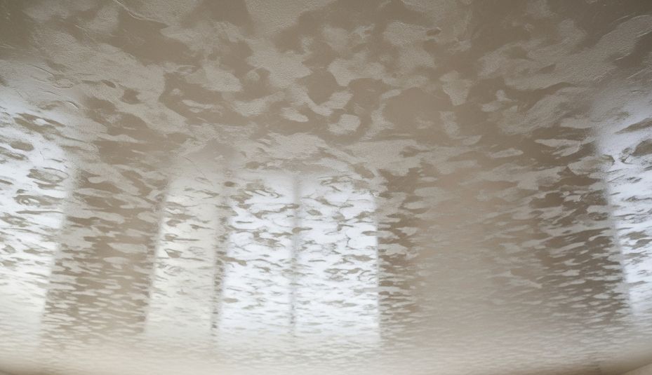 • Маскировка дефектов — покрытие скроет неровности и трещины чернового потолка.