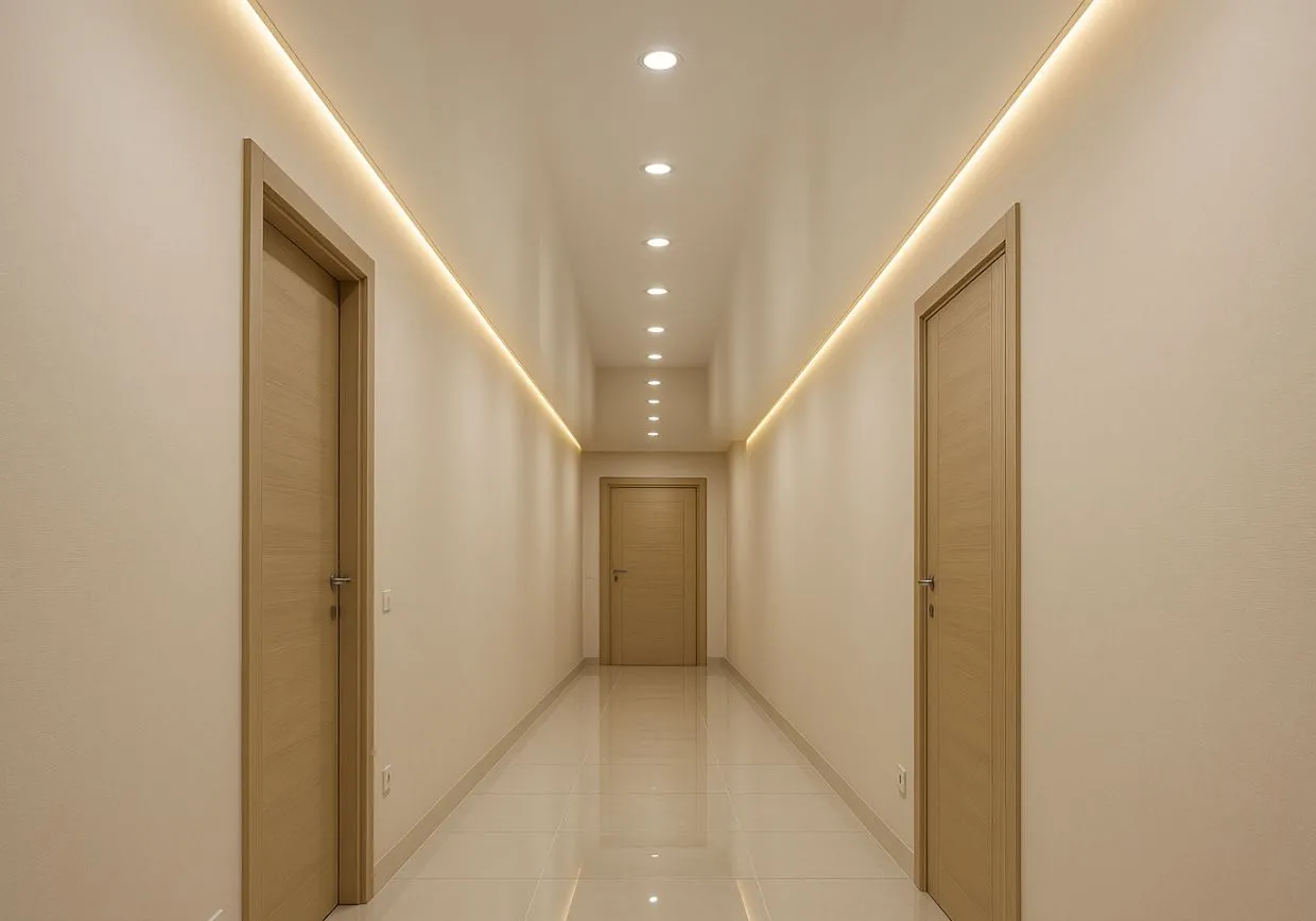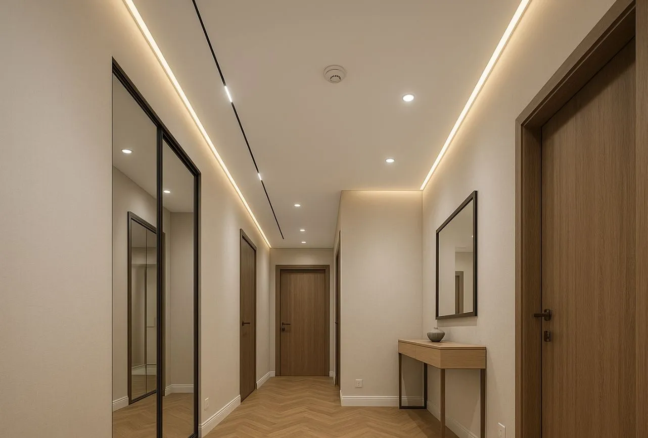 Преимущества натяжных потолков в коридоре