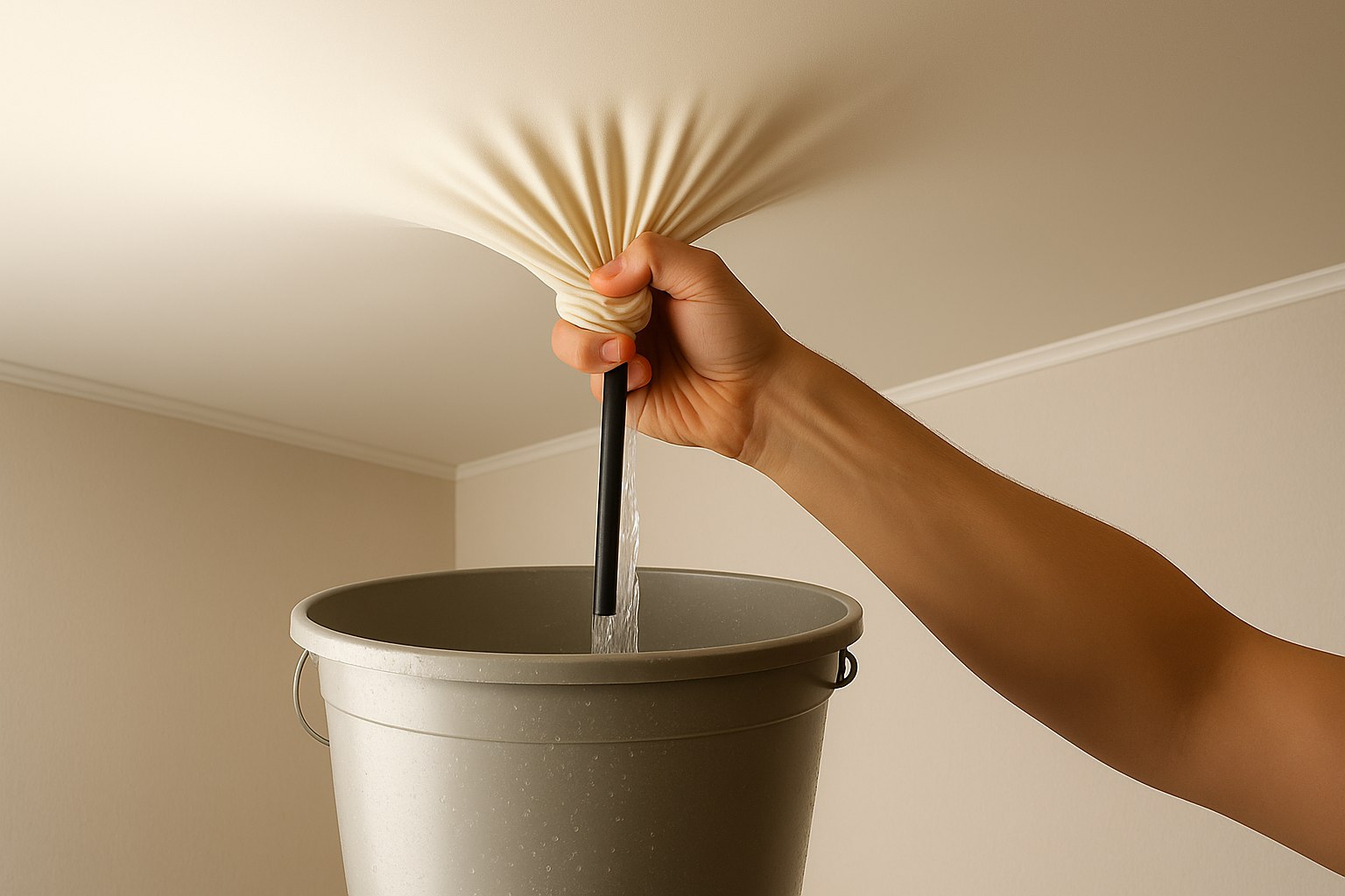 В многоэтажных домах ПВХ натяжные потолки — настоящее спасение от затоплений соседями сверху. 1 квадратный метр ПВХ пленки способен удержать до 100 литров воды. И потолочная система от этого не страдает — деформированная часть полотна вернет свою форму после удаления воды. Но как это сделать? Рассказываем, как слить воду с натяжного потолка самостоятельно, с какими сложностями можно столкнуться, и почему все же стоит вызвать профессионалов.